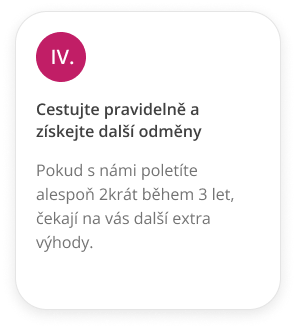 Pokud s námi cestujete poprvé nebo jen občas, čekají na vás speciální partnerské nabídky a odměny z balíčku CLASSIC. Cestujete-li pravidelně, alespoň 2× za 3 roky, při nákupu zájezdu získáte navíc balíček CARE nebo COMFORT se slevami na zájezdy a doplňkové služby. Konkrétní balíček závisí na ceně zájezdu za dospělou osobu. Do programu se přidáte snadno ve své klientské sekci. Pokud ještě účet nemáte, stačí krátká registrace.