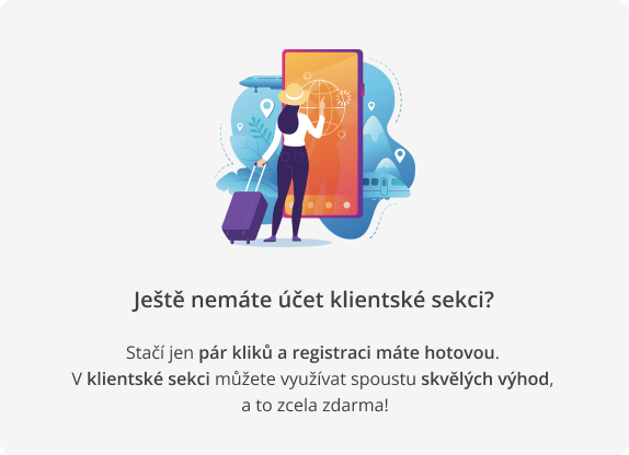 V klientské sekci najdete všechny své zájezdy na jednom místě. Můžete se tak jednoduše podívat nejen na detaily vaší příští dovolené, ale také si připomenout oblíbený hotel, kde jste zažili krásné okamžiky.