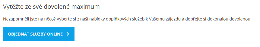 - V případě, že při uzavření smlouvy o zájezdu zakoupíte doplňkové služby v hodnotě více než 1 000 Kč, snížíme vám cenu doplňkových služeb k úhradě až o 1 000 Kč.